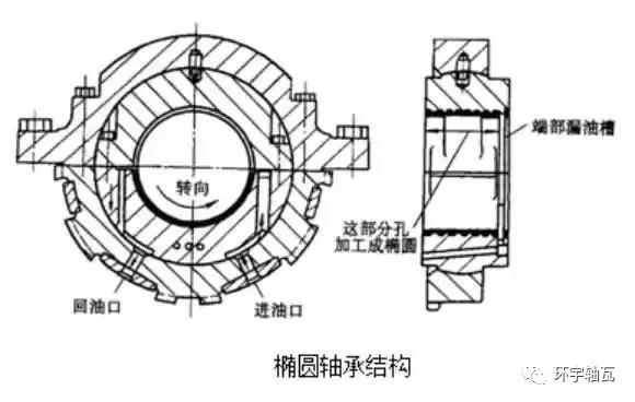 橢圓瓦軸承:橢圓瓦軸承的結(jié)構(gòu)與圓柱形軸承基本相同,只是軸承側(cè)隙加大,軸瓦上、下部都可以形成油楔。由于上瓦油膜力向下作用壓低了軸心的位置,以及軸瓦的曲率半徑增大是軸瓦中心與軸承中心不重合,增大了軸頸在軸瓦內(nèi)的絕對(duì)偏心距,使偏心率增加,因此具有較好的穩(wěn)定性,主要應(yīng)用在大、中型汽輪機(jī)中。