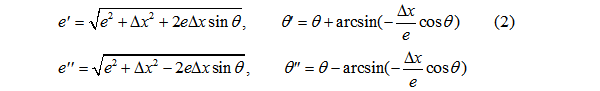 以Kxx為例,在x方向給以+△x、-△x位移,由幾何關(guān)系,新位置下的偏心率、偏位角: