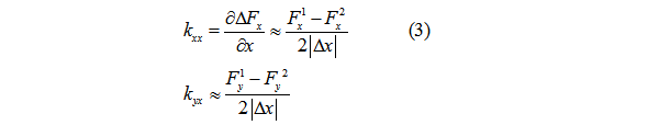 +△x擾動得Fx1、Fy1;-△x擾動得Fx2、Fy2;