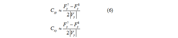+△Vx擾動得Fx5、Fy5;-△Vx擾動得Fx6、Fy6;+△Vy擾動得Fx7、Fy7;-△Vy擾動得Fx8、Fy8。